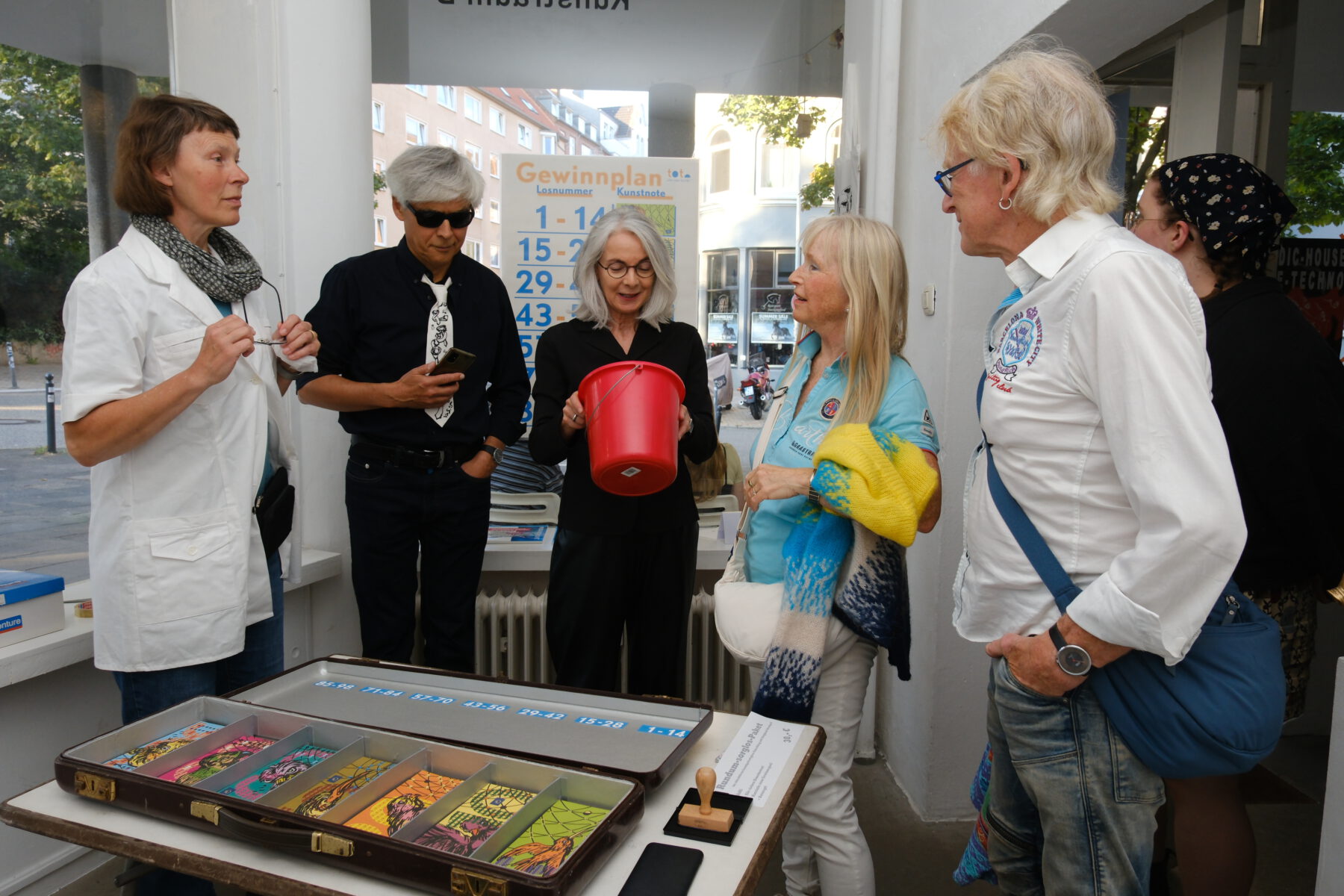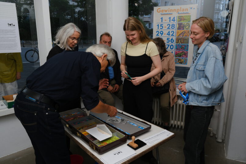 Euch erwarten die Performance TOTO. ALLE ODER KEINER von Maren Koll und Vladimir Sitnikov, sowie die Mitmachaktion MEINE KUNST IM KUNSTRAUM B, in deren Zuge ihr euch an den Wänden des Kunstraums verewigen könnt. Außerdem freuen wir uns euch den Auftritt der Live-Techno-Band LAGERREGAL aus Berlin ankündigen zu können. Zu guter Letzt darf natürlich unser Bingo nicht fehlen, bei dem ihr tolle Preise, Kunst und Sensationen gewinnen könnt!
