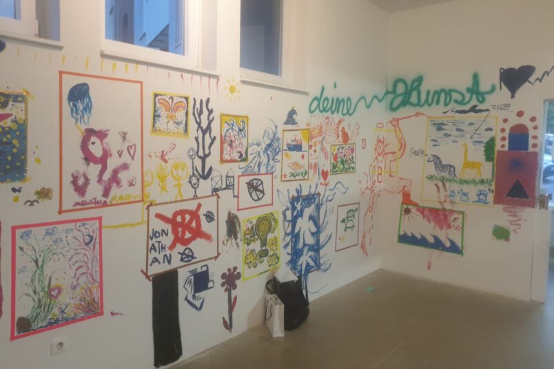 Hier ein paar Eindrücke vom letzten Abend in der Wilhelminenstraße – vielen Dank an alle, die gekommen sind und die Wände mitgestaltet haben, an das toto-Team Maren Koll & Vladimir Sitnikov mit tatkräftiger Unterstützung durch Klára Erdei, die Band Lagerregal und Axel Schön, der den Abend fotografisch begleitet hat.